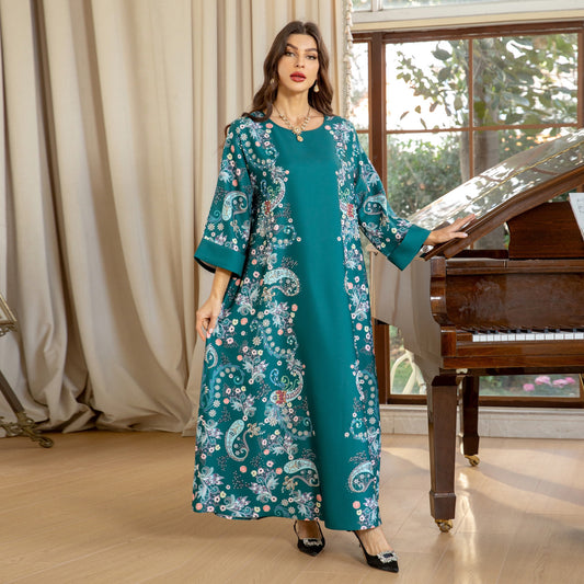 MS569#Arabic women's fashion printed hot diamond bubble beads Muslim Ramadan Middle Eastern ethnic style robe