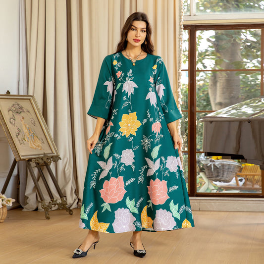 MS583# Fashionable European and American women's summer new cross-border Middle Eastern Muslim stitching printed cardigan robe