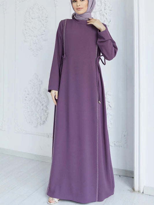 MS534#Muslim 2024 spring cross-border fashion ethnic women's suede bronzing hot diamond dress with waist rope