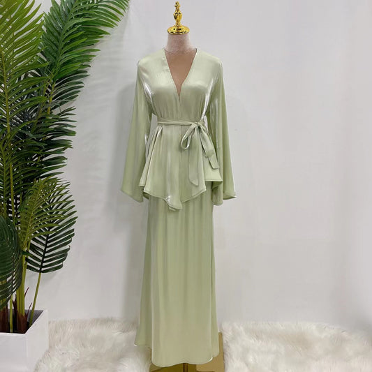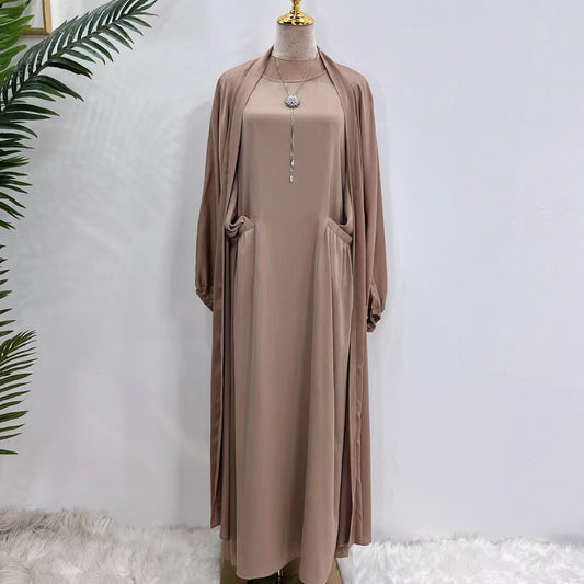 MS292#Muslim embroidered three-dimensional loose cardigan gown
