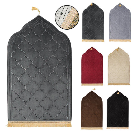 PM010 Prayer Rug Muslim Mat Islamic - Thickening Sponge Muslim Rug for Kids Men Women with Islam Prayer Beads for Eid Travel Ramadan, Soft Luxury Great for Knees and Forehead