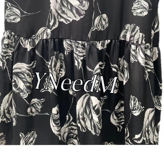 MS309#Loose fitting women's long dress with floral fragments