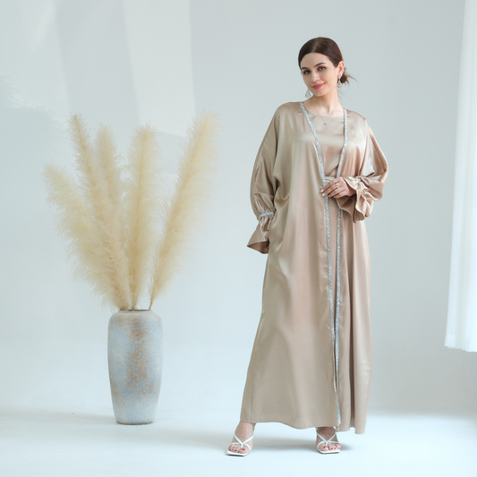 MS343#Modest fashion solid colored beaded cardigan robe (NO inner dress)