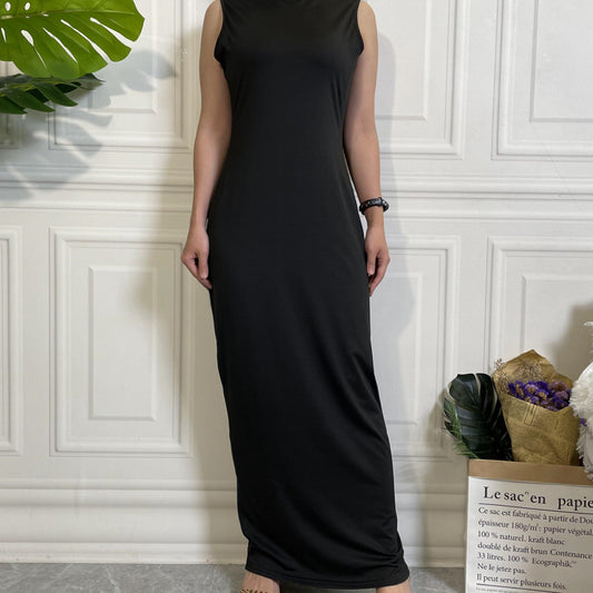 MS312#modest sleeveless slip inner dress with pockets