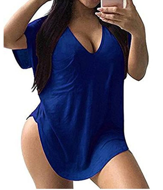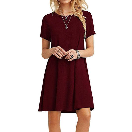 FS305#Women's Casual Plain Simple T-Shirt Loose Dress