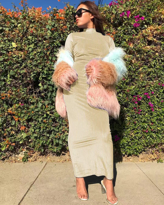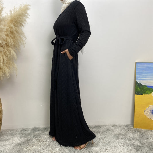 MS208#Muslim Korean velvet bottomed hip wrap dress