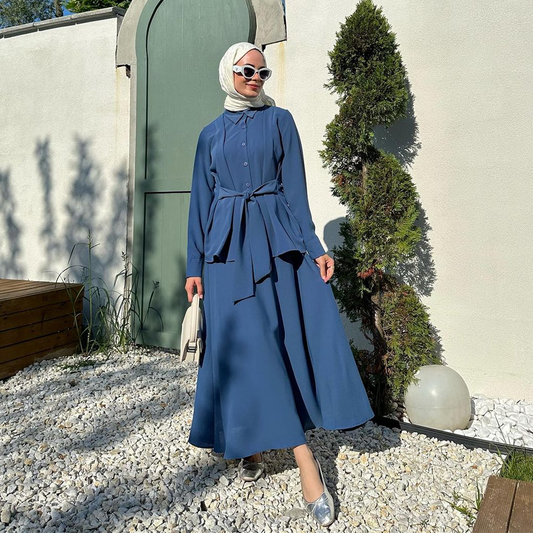 MS364#Traje informal de camisa y falda de manga larga suelta para mujeres musulmanas