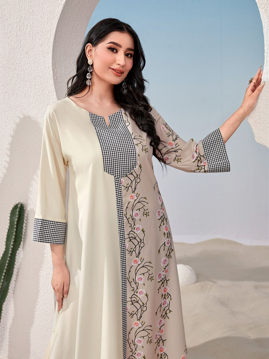 Bata de manga regular con estampado de patchwork y moda musulmana MS353