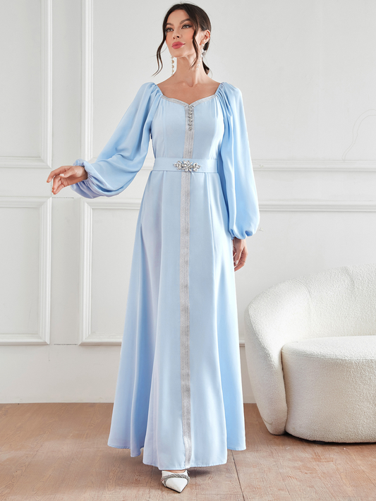 Bata de dos piezas con puños rotadores y cristales de imitación de gasa para mujer musulmana MS350