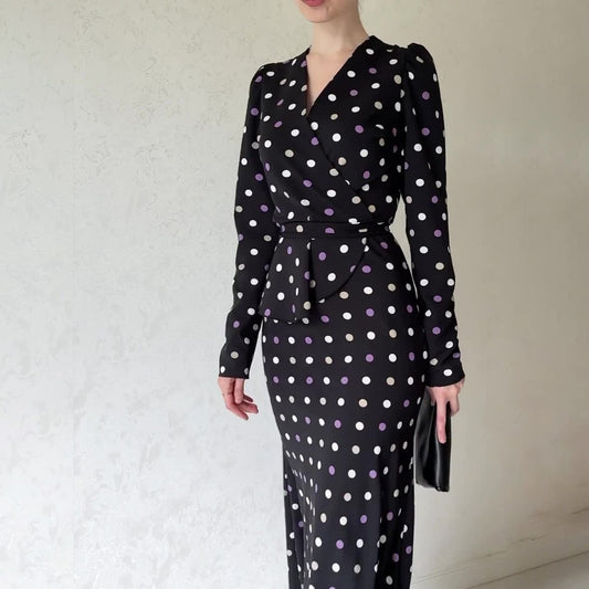 MS445#Vestido de lunares con cordones en la cintura para mujer
