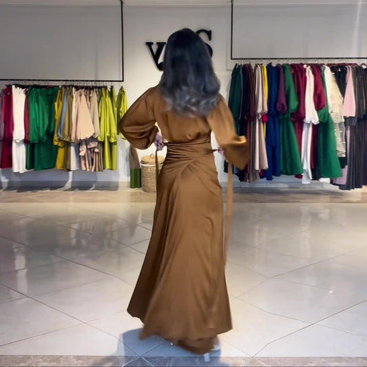 MS442#Bata musulmana modesta de satén brillante con mangas de murciélago